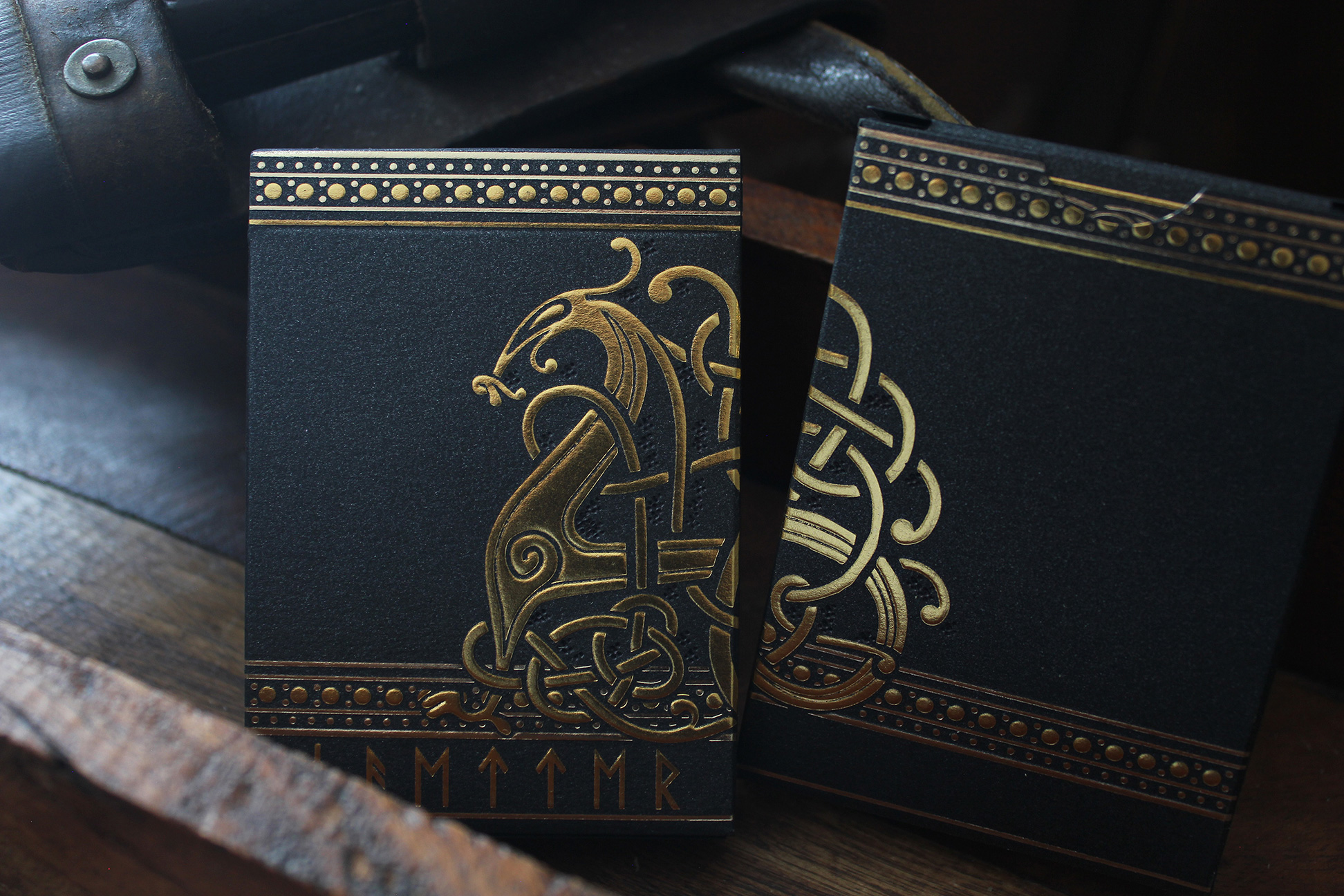 The 2023 remaster of the NORSE deck. Luxurious tuck with embossed art and three metal foils, limited run with numbered seals, metallic inks on cards. Visit Kickstarter project page for more information https://www.kickstarter.com/projects/designimperator/ragnarok-playing-cards-remastered/description