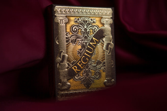 Companion to the Classic edition in the 2021 campaign. Antique features a more austere, time?worn aesthetic. Embossed, foil?accented tuck, produced by NPCC, art by Denis Makanin & Lev Kushnirenko. Visit Kickstarter project page for more information https://www.kickstarter.com/projects/1672116911/regium-playing-cards