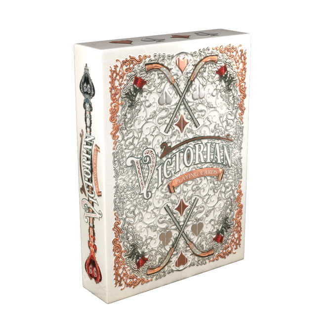 Pearl edition pairs the ornate Victorian pattern with a light background and metallic inks. NPCC tuck with embossing, silver foiled stock and inner printing, numbered seal. Visit Kickstarter project page for more information https://www.kickstarter.com/projects/maciejfrolow/victorian-playing-cards-pearl-edition